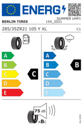 De Berling Tires Summer UHP1 285/35 ZR21 105Y DOT 2021 XL M+S Zomerband heeft veel eersteklasse eigenschappen. De band heeft een extra binnenwandcoating van nano-intelligent zelfherstellend materiaal dat voorkomt dat er lucht ontsnapt na een lekke band. De speciale AFB-groeven met geluidsisolatie zorgen voor een aangename rit. Het niet-poreuze zijwandontwerp van de UHP 1 geeft hem een uitstekende verschijningsvorm. Vier langsgroeven en open schoudergroeven aan de binnenzijde zorgen voor een uitstekende hanteerbaarheid en afvoercapaciteit.